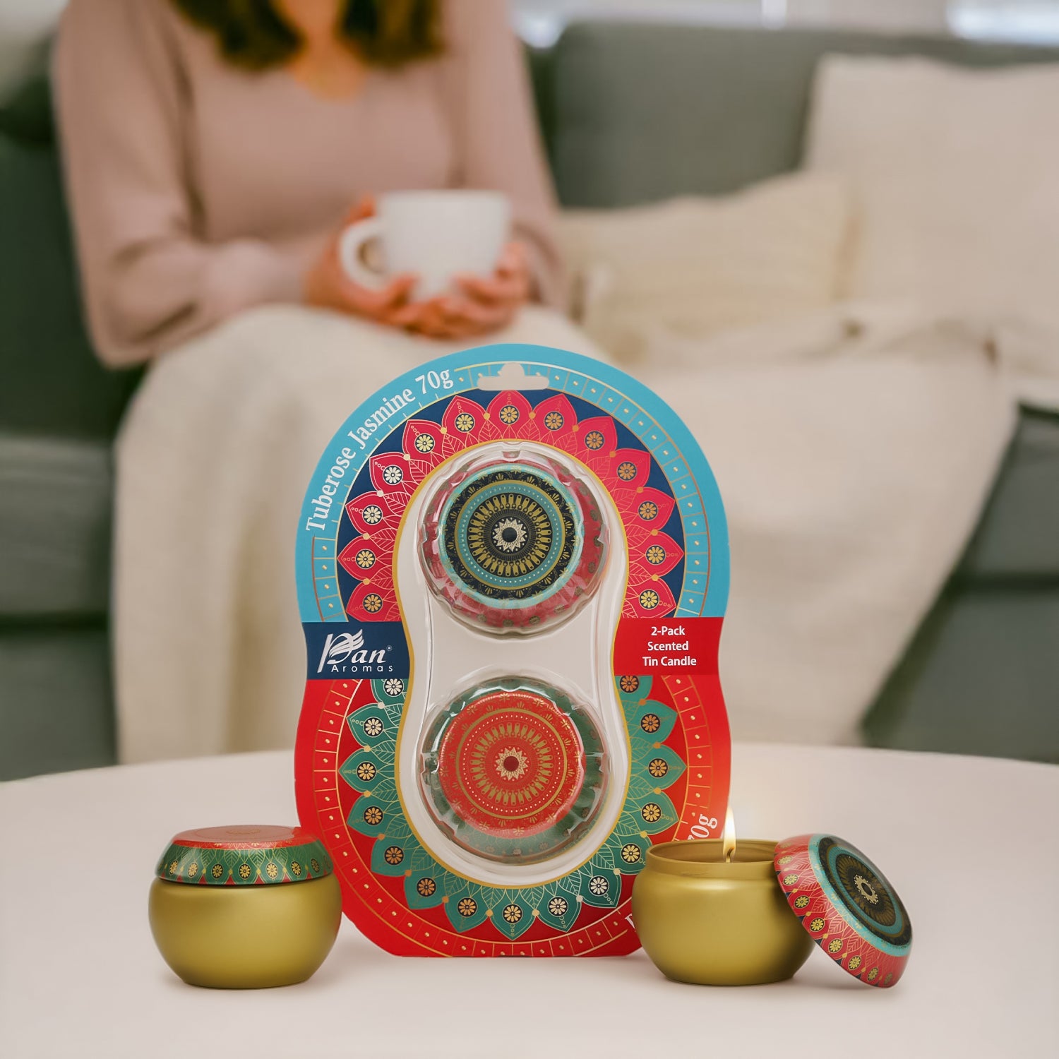 Elegant Aroma Duo – Pan Aromas 2-Pack Scented Tin Candle (Tuberose Jasmine & Rose Oud)