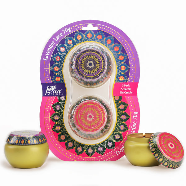 Lavender Lace & Tropical Paradise Scented Tin Candle- 2 Pack