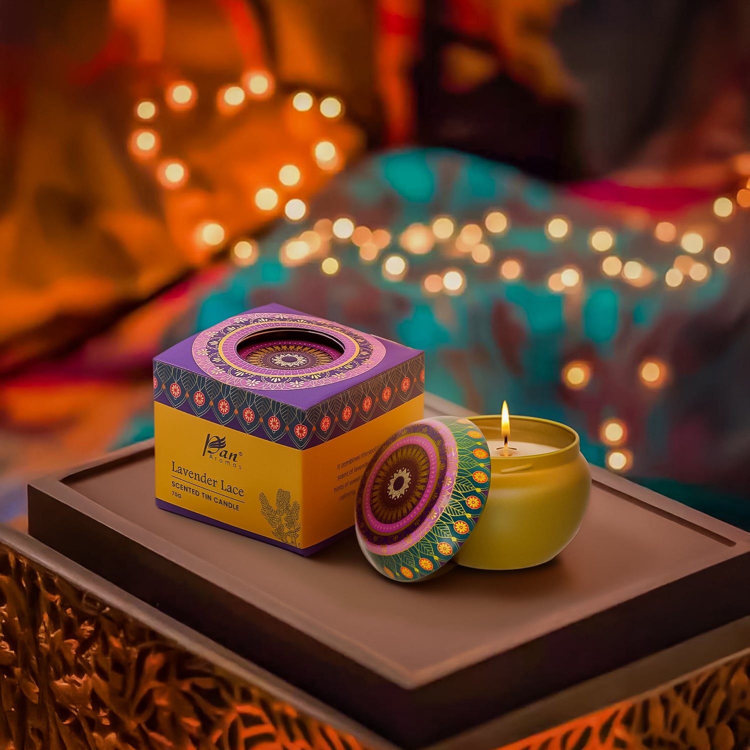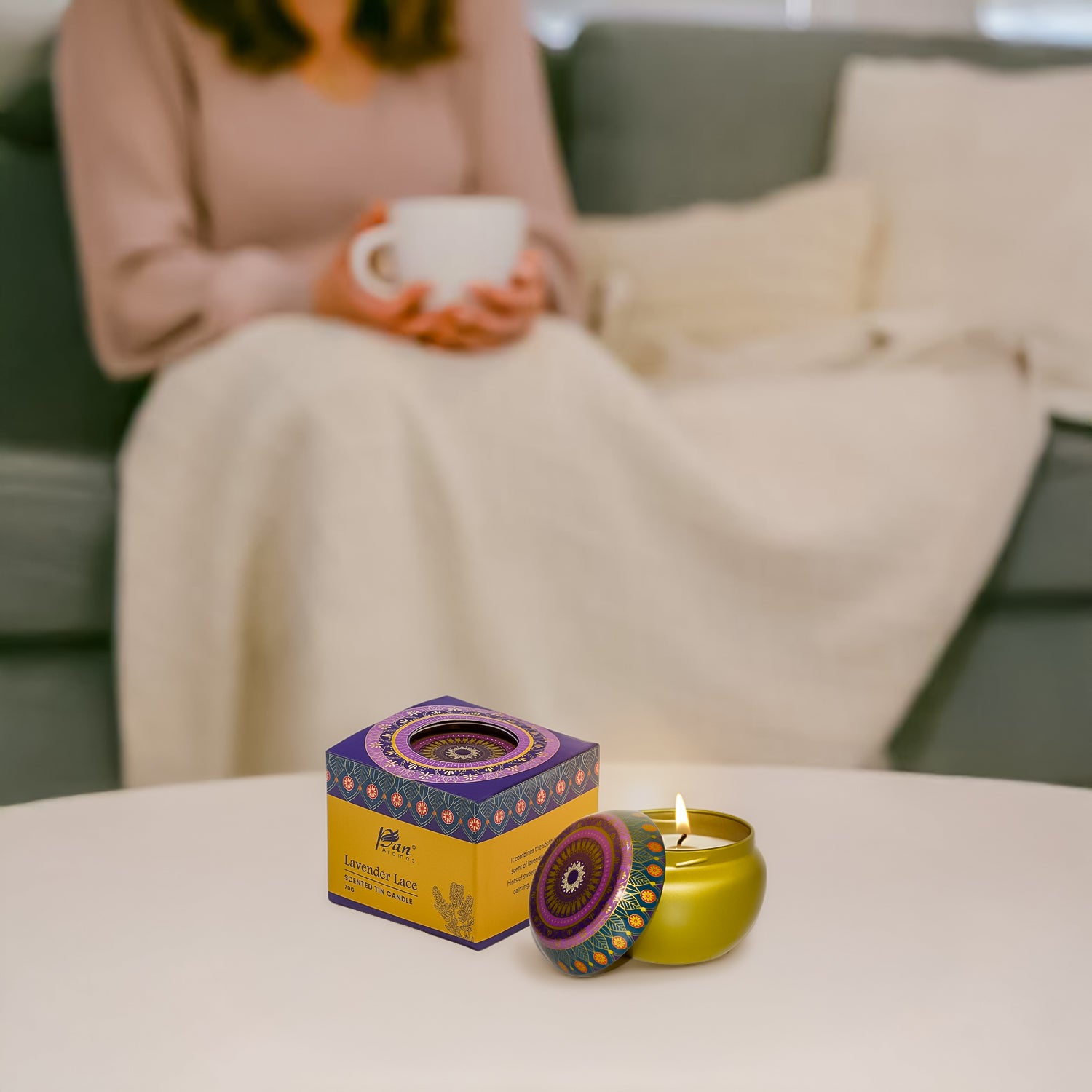 Relax & Rejuvenate – Pan Aromas Scented Tin Candle (Lavender Lace)