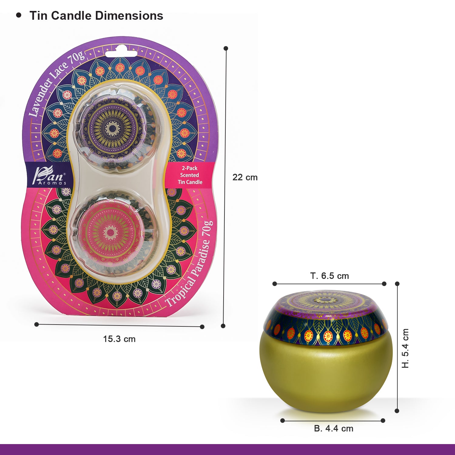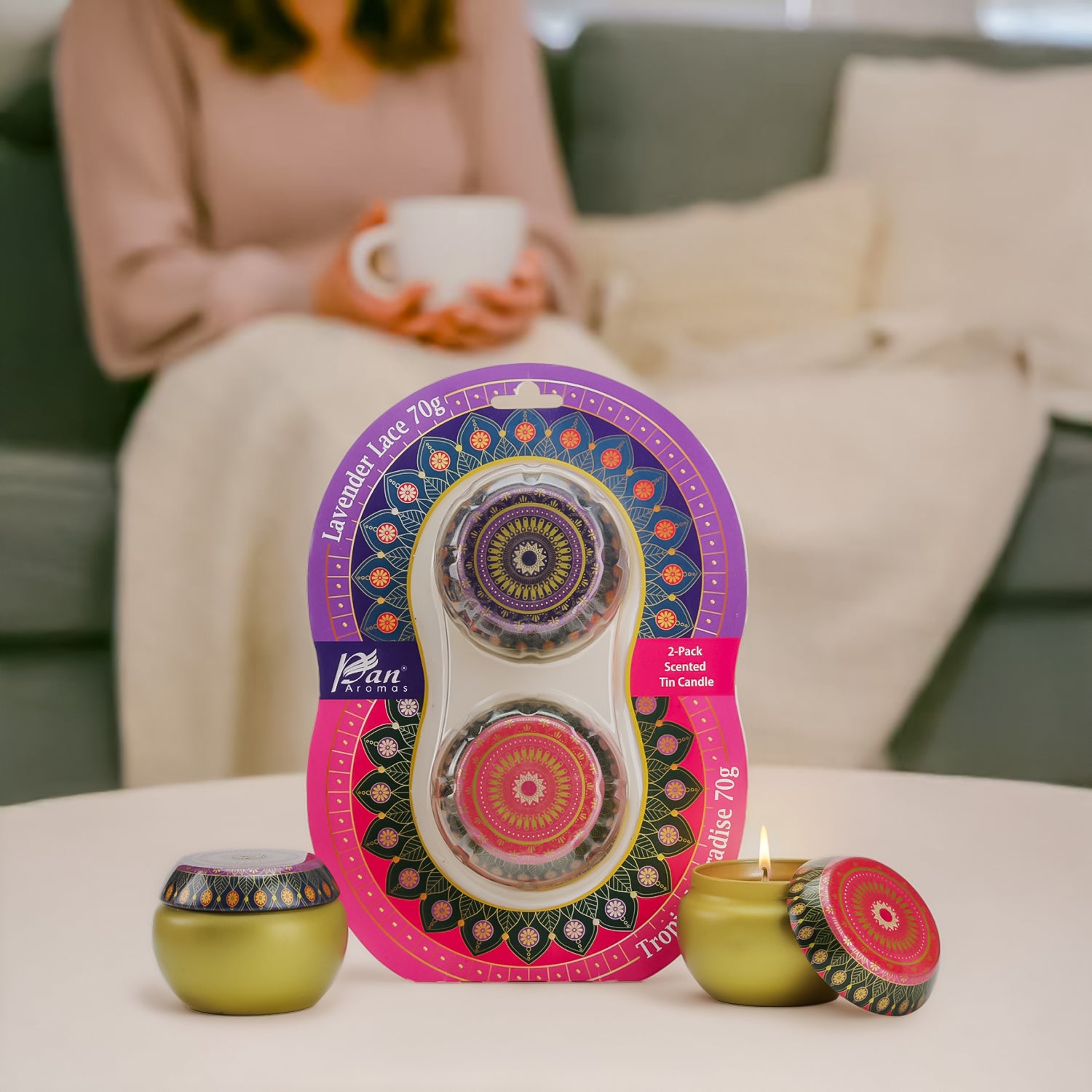 Relax & Refresh Duo – Pan Aromas 2-Pack Scented Tin Candle (Lavender Lace & Tropical Paradise)