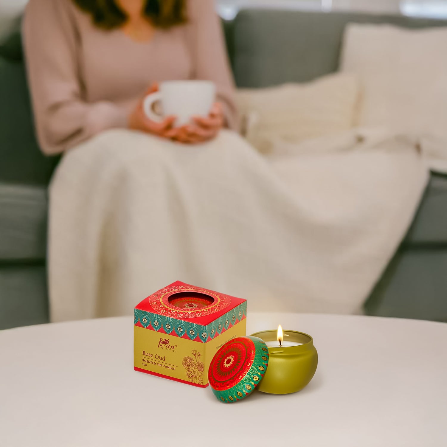 Unwind in Luxurious Warmth – Pan Aromas Scented Tin Candle (Rose Oud)