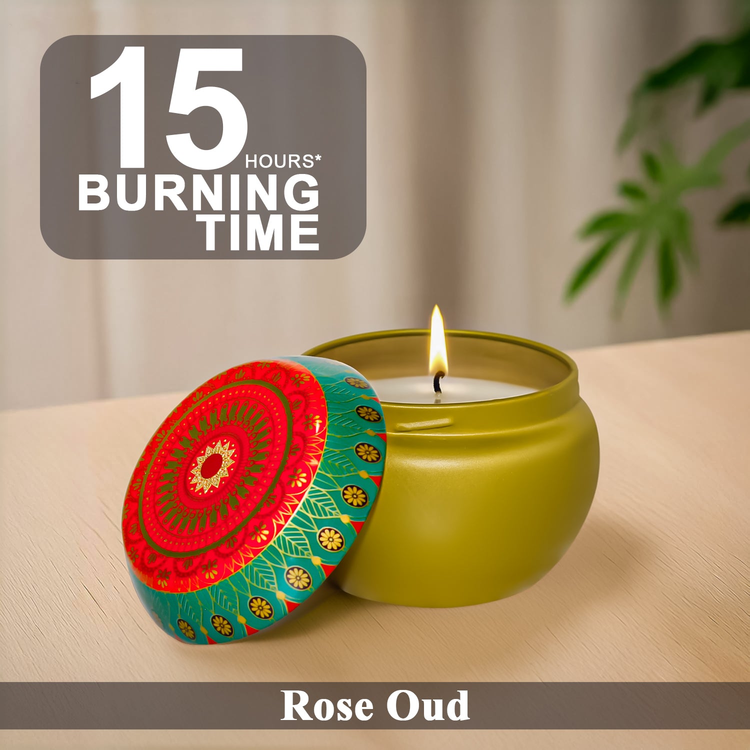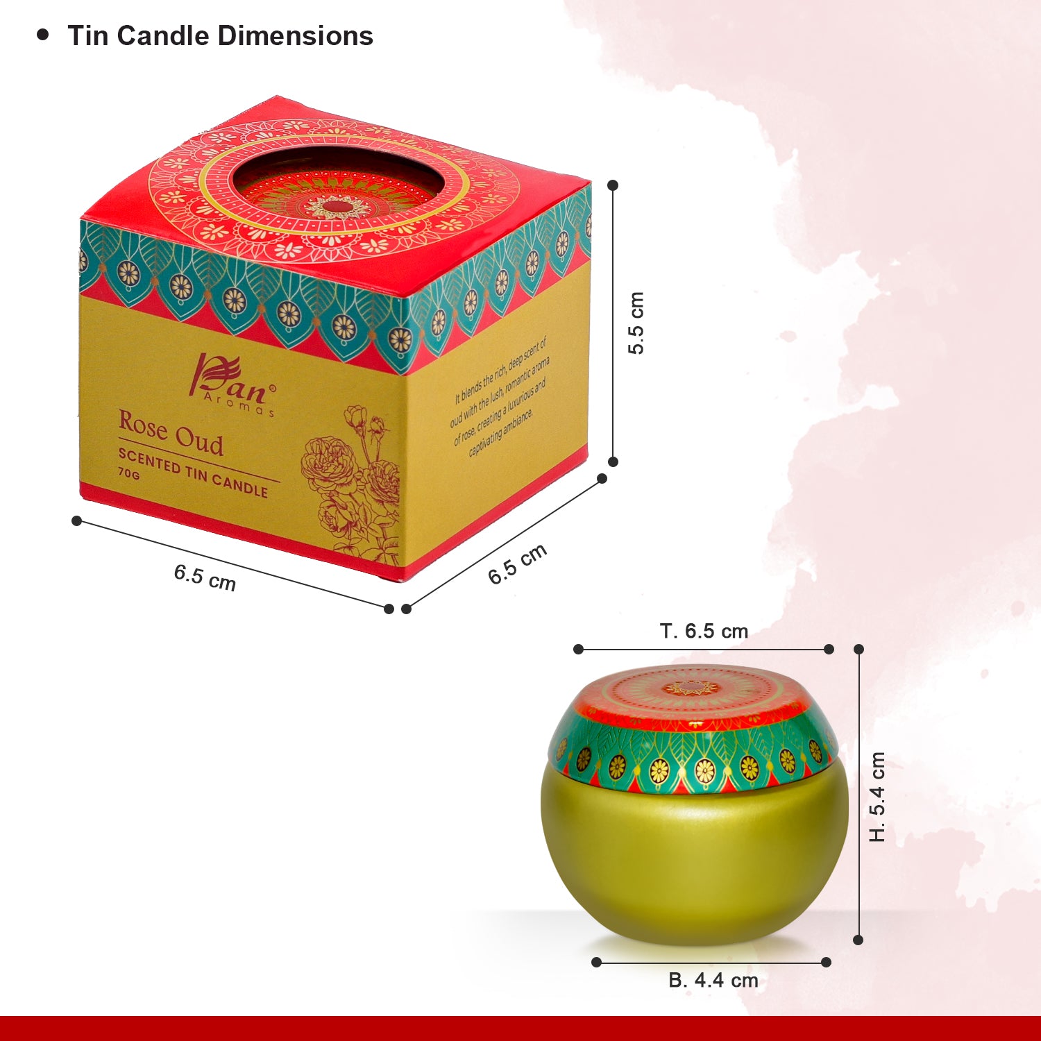 Infuse your space with the captivating allure of Rose Oud – a fragrance that beautifully combines the romantic essence of blooming roses with the deep, woody richness of oud. Crafted to create a serene, elegant setting, this 70g tin candle is ideal for quiet evenings, intimate moments, or simply elevating your everyday ambiance. The sleek tin with an ethnic-inspired lid adds a touch of charm to your space, making it as visually appealing as it is aromatic.